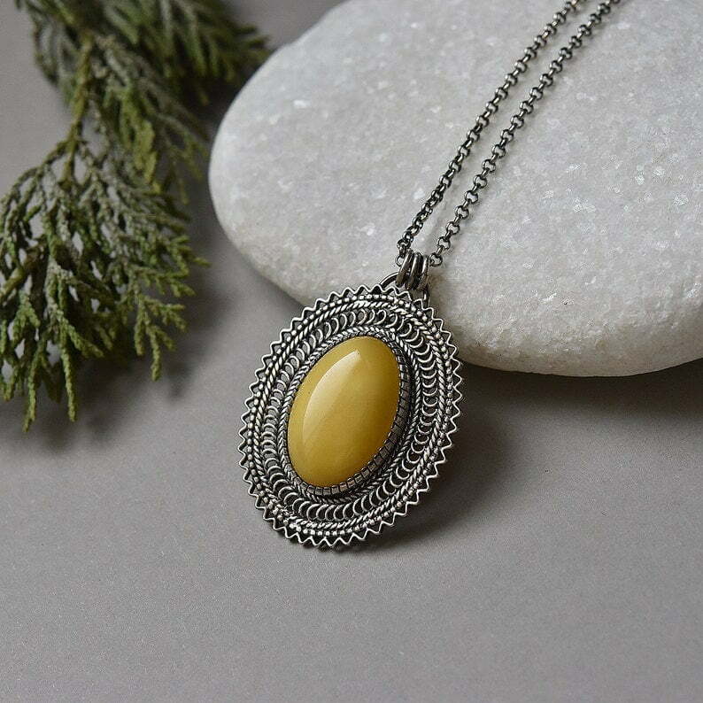 Tags: Amber jewellery gift, Amber silver pendant, Baltic Amber necklace, honey amber pendant, Oval filigree pendant