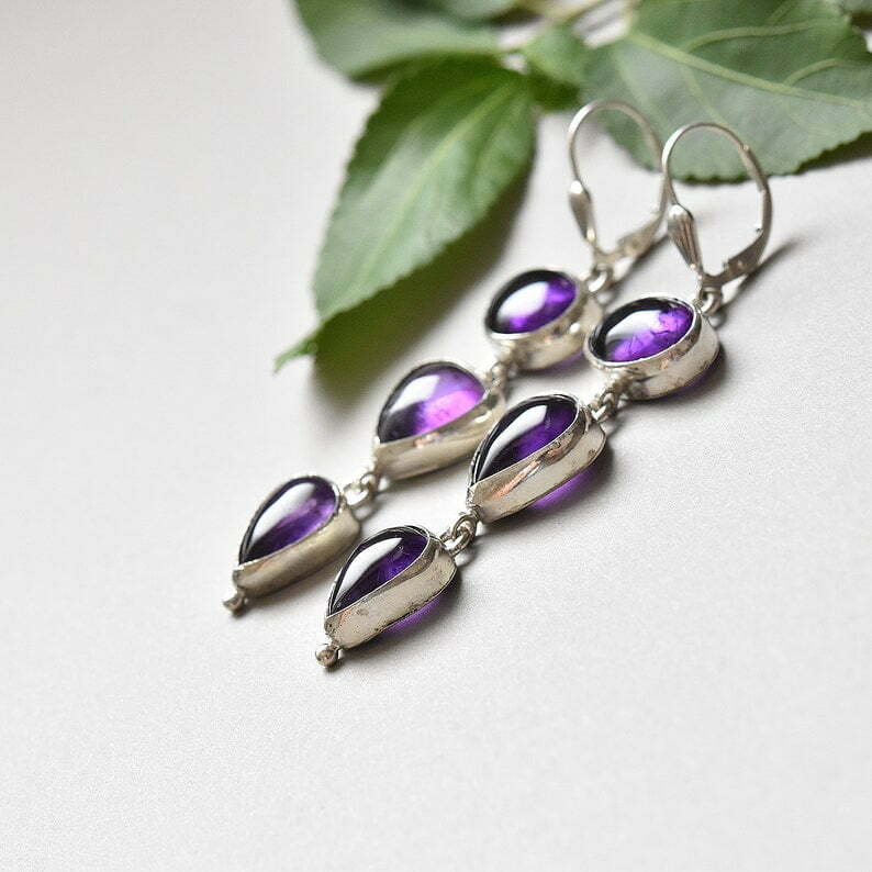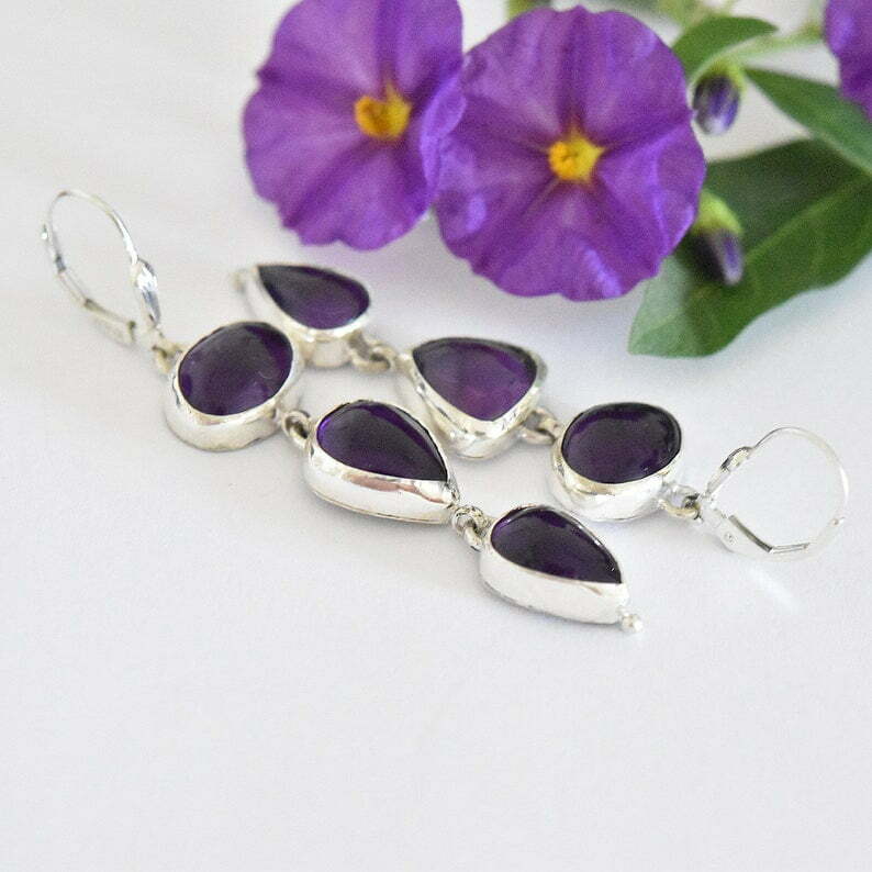 Tags: February Birthstone dangle and drop earrings, Purple Amethyst earrings, Silver earrings