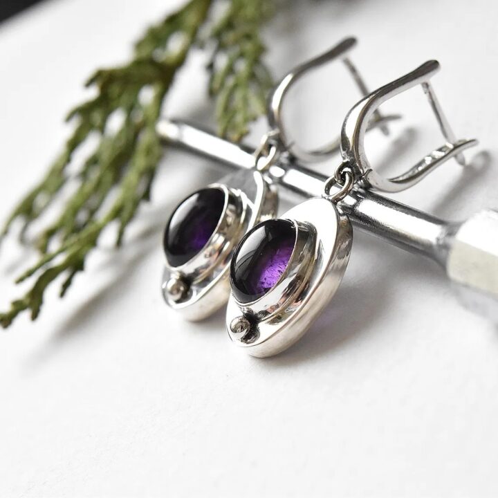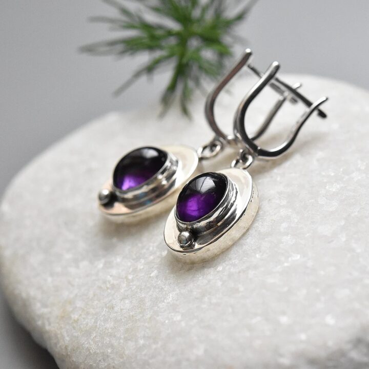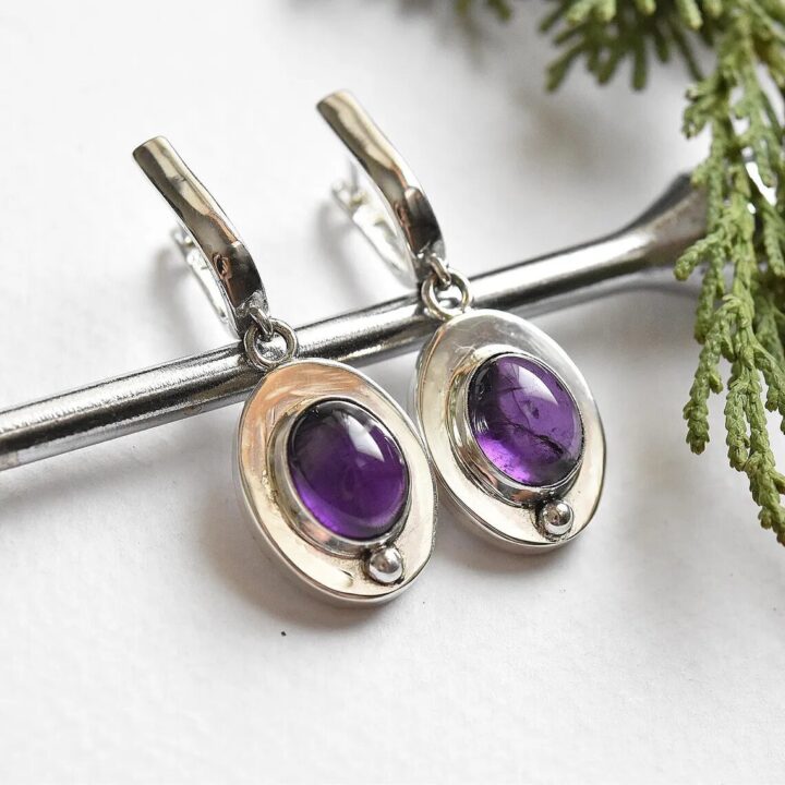Handmade sterling silver earrings with natural amethyst gemstones.