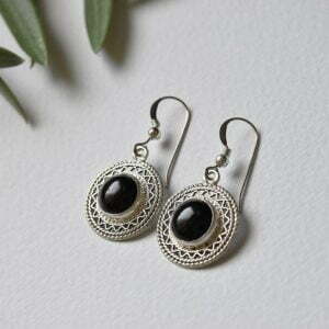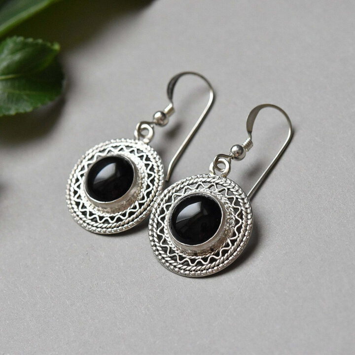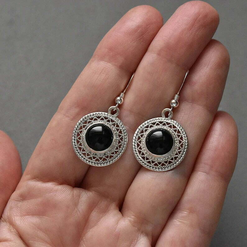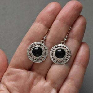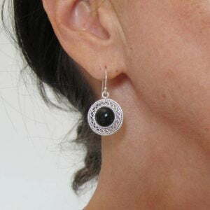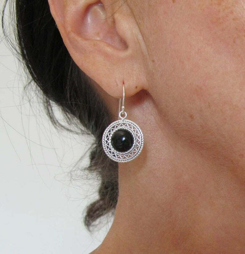 Tags: Black onyx Silver earrings, Circle earrings, everyday earring, Israeli jewelry, Tribal earrings