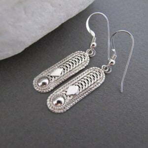 Delicate sterling silver filigree earrings decorated with black onyx stones.