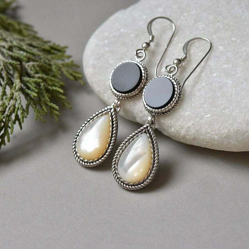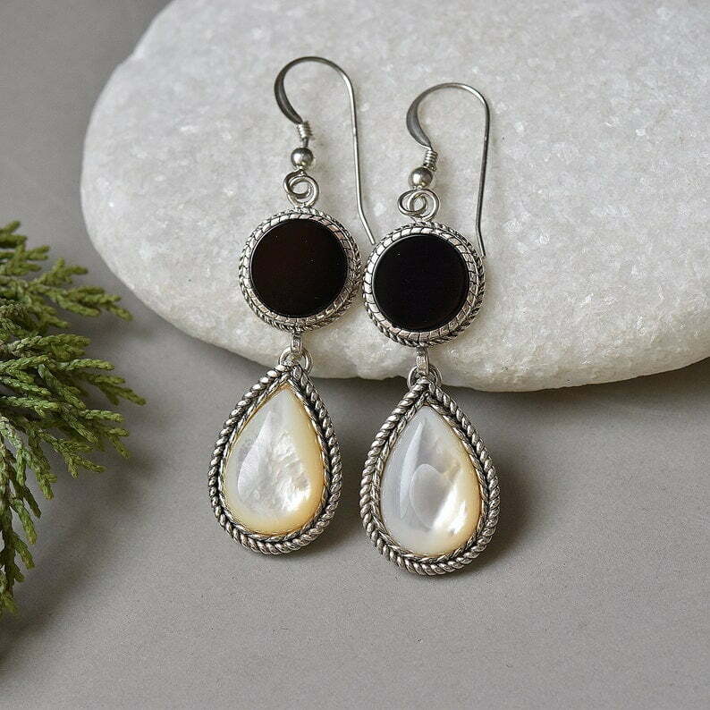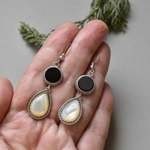 Tags: Black and white silver earrings, Black onyx Silver earrings, dangle earrings, mother of pearl earrings