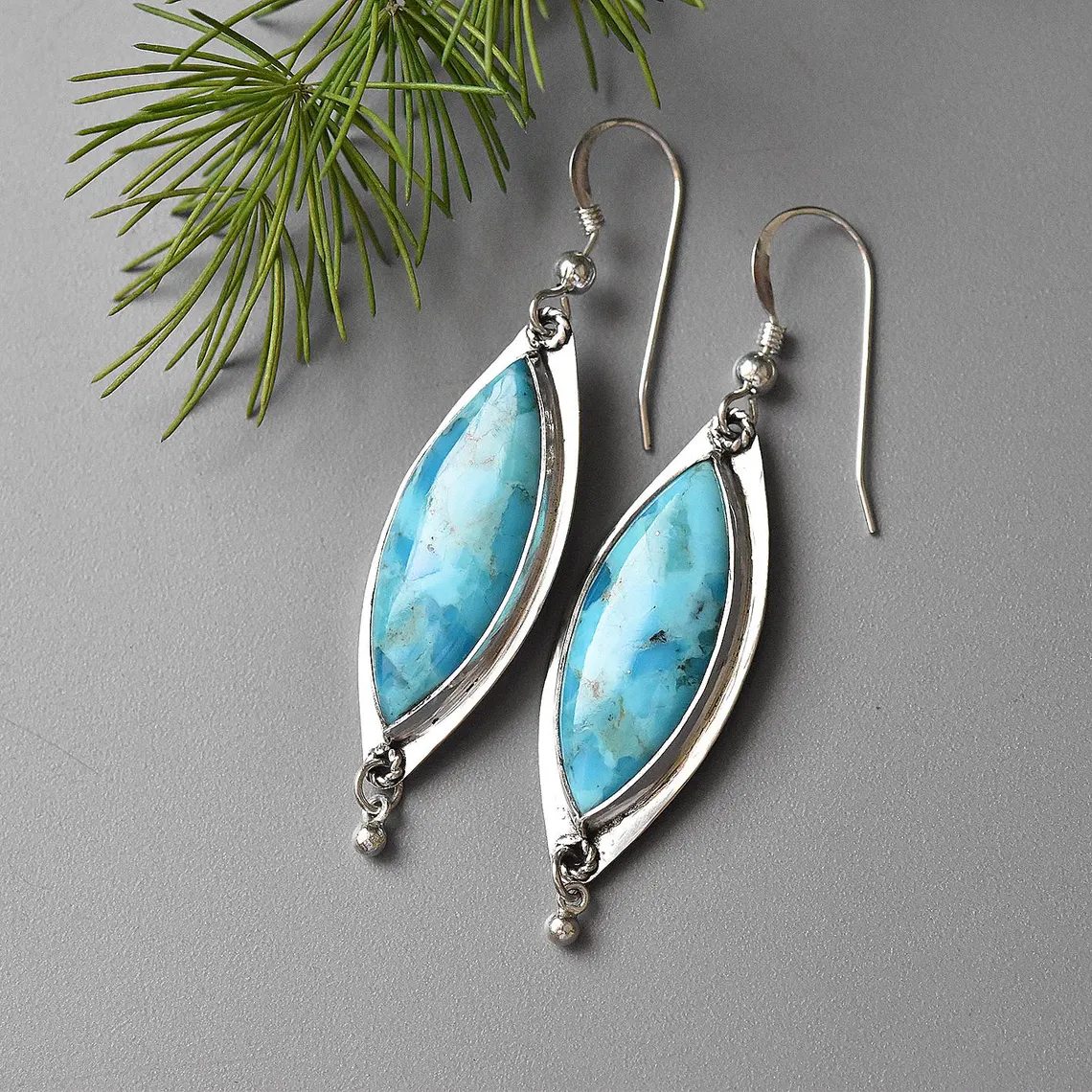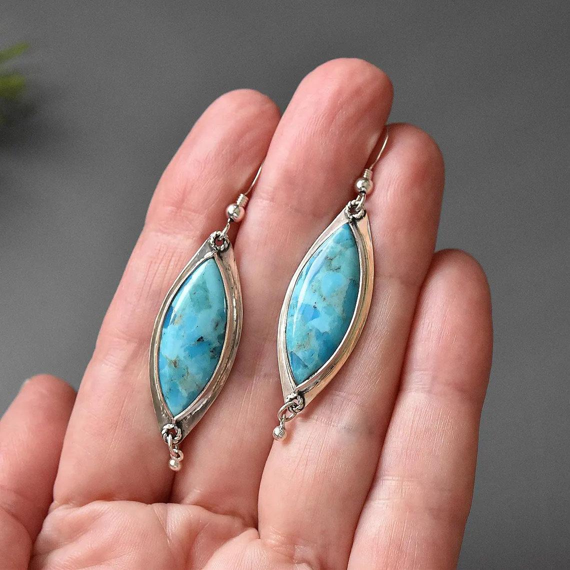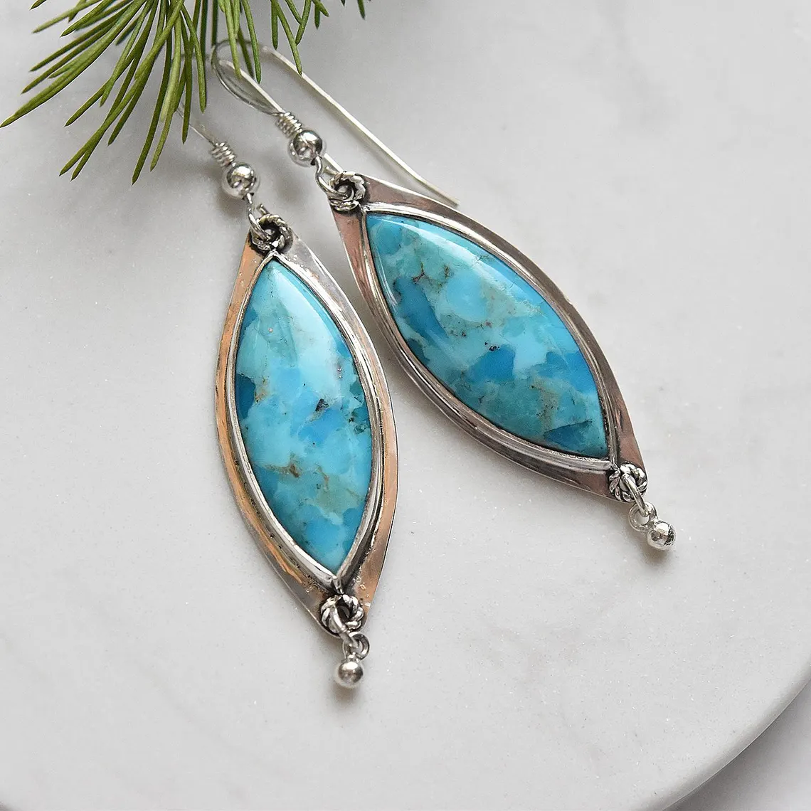 Blue Mohave Turquoise Silver Earrings, Marquise Shape Boho Earrings