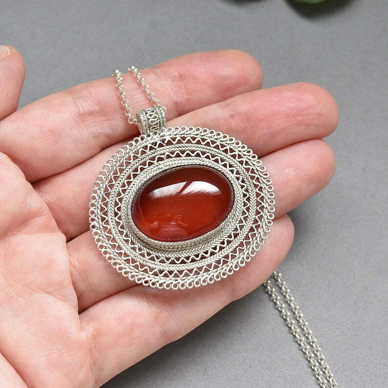 Tags: August birthstone pendant, Filigree pendant, Large carnelian silver pendant, One of a kind carnelian necklace, Oval carnelian necklace