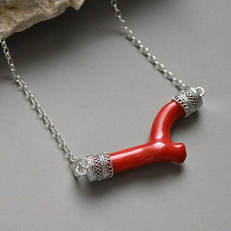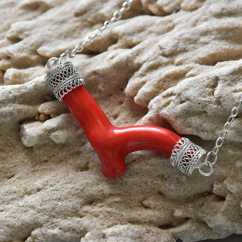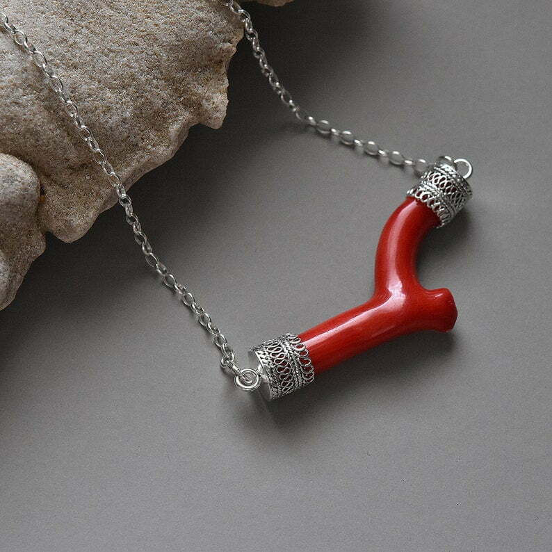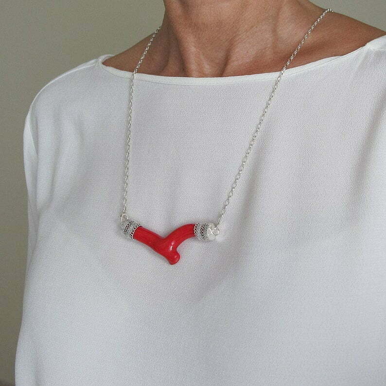 Tags: Coral necklace, Israeli jewelry, Large red pendant, Silver Filigree necklace