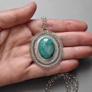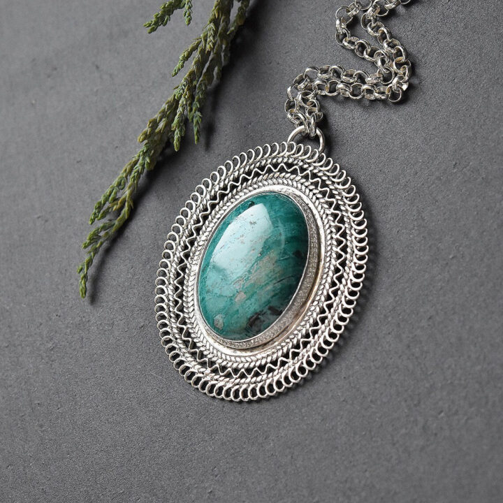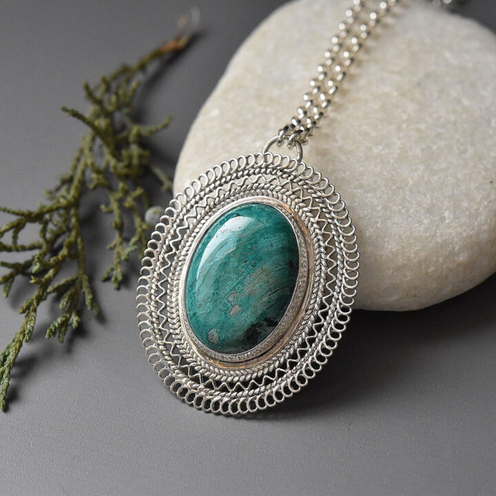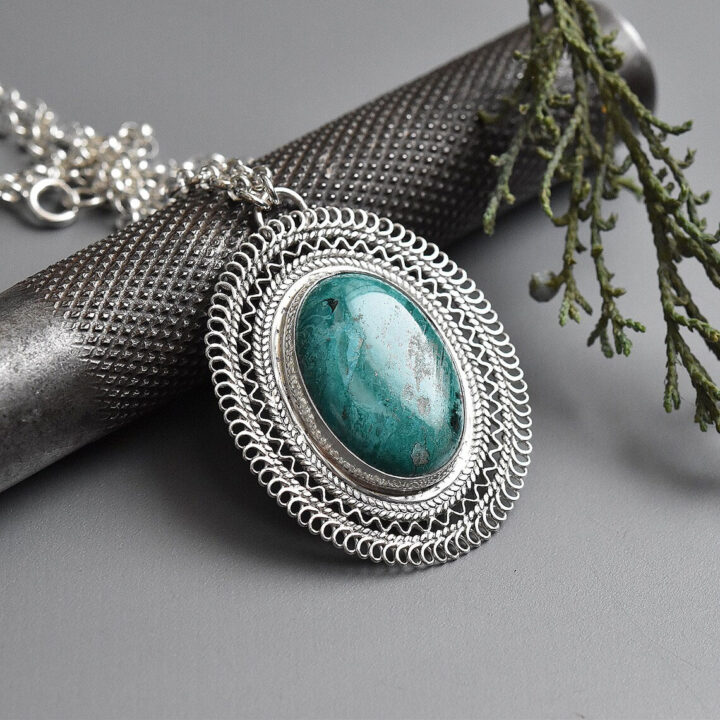 EILAT STONE SILVER Necklace,oval filigree pendant,Handmade gift