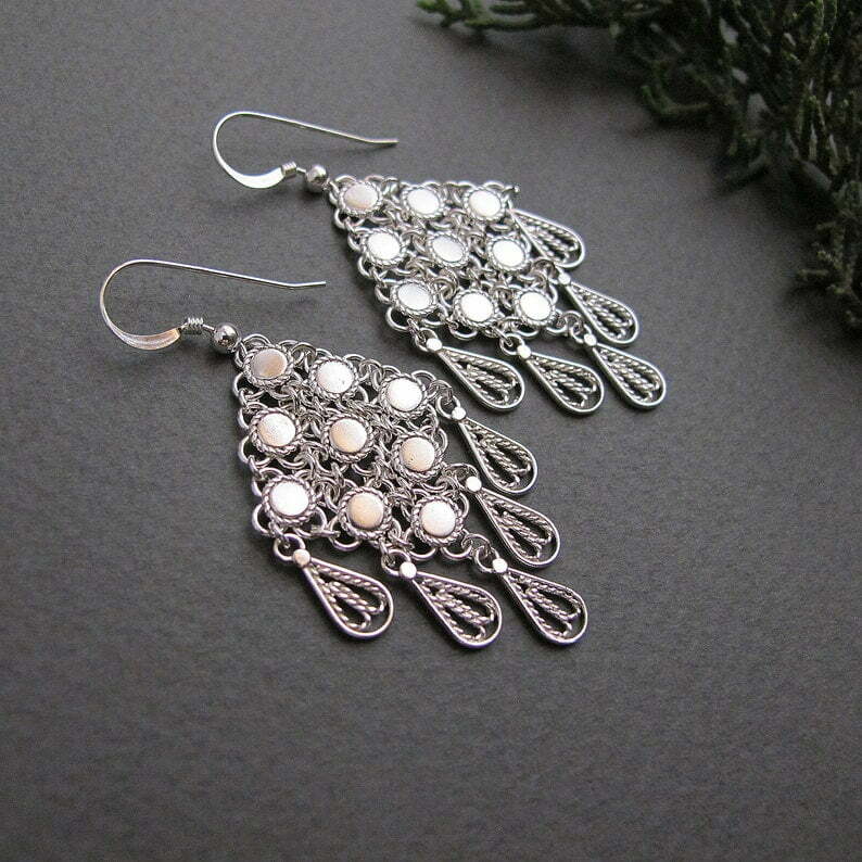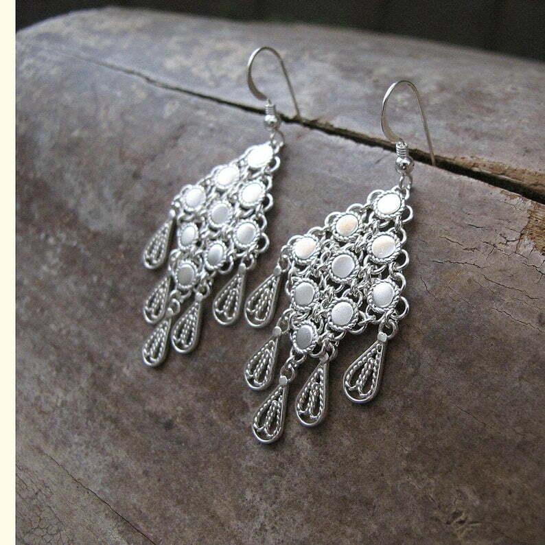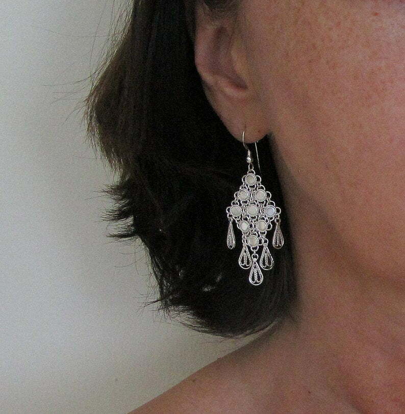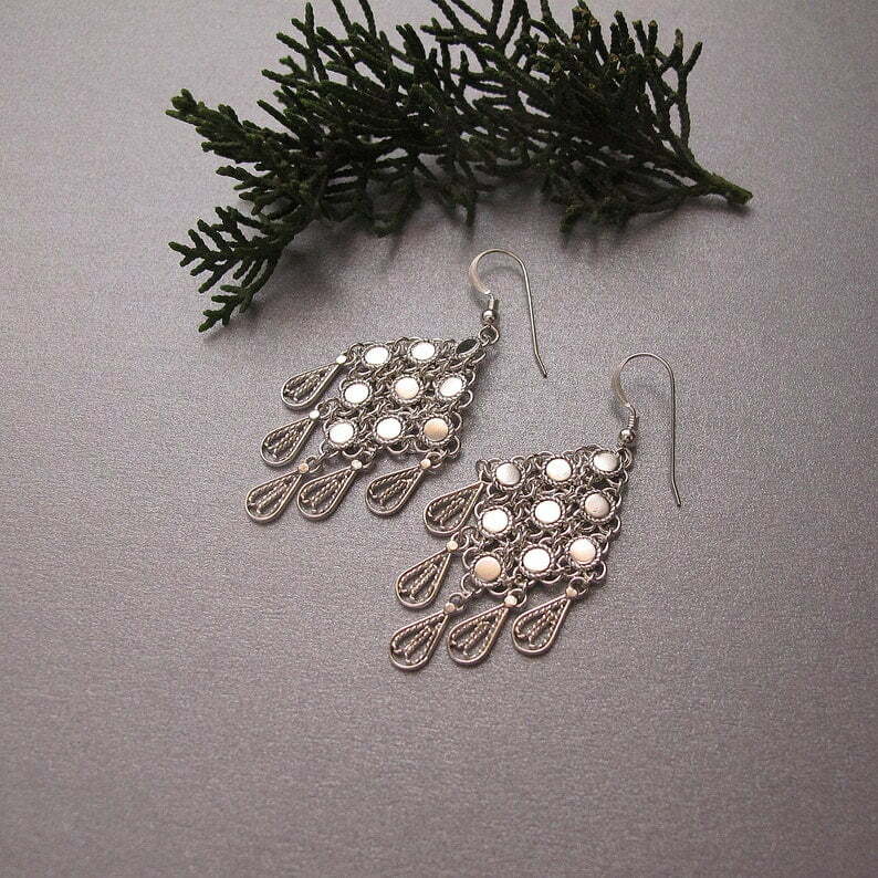 These statement silver filigree earrings are totally handmade and decorated with traditional Yemenite silver drops.