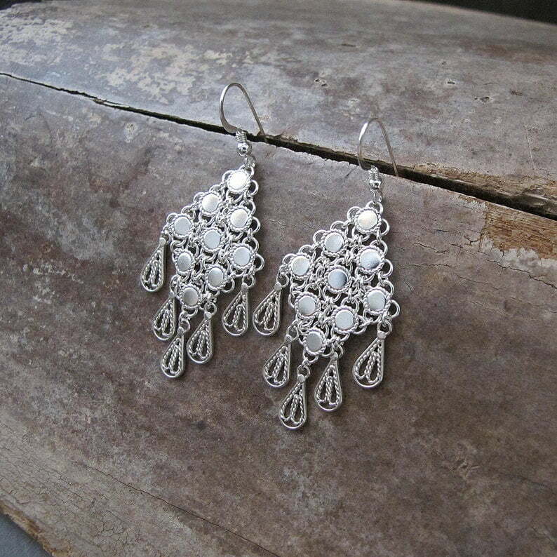 Tags: Dangle Tribal mesh earrings, drop hippy earrings, Ethnic ornate silver earrings, Festival earrings, yemenite jewelry
