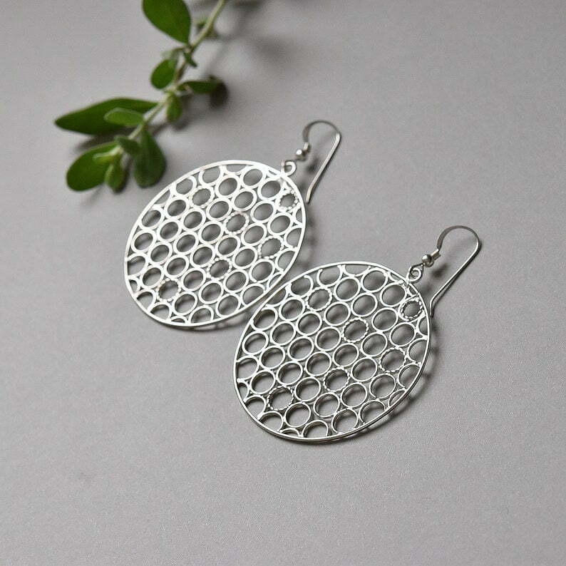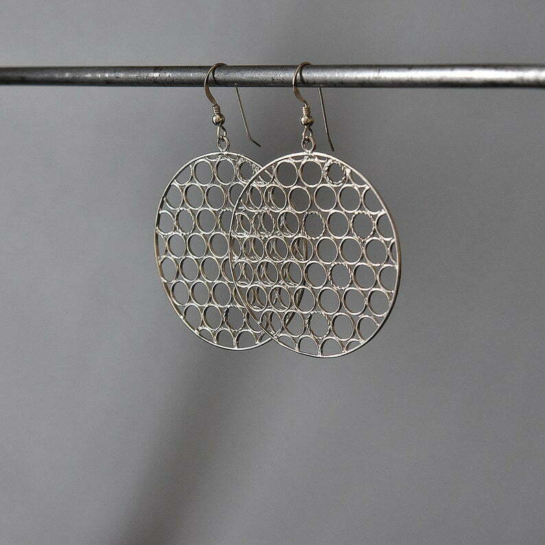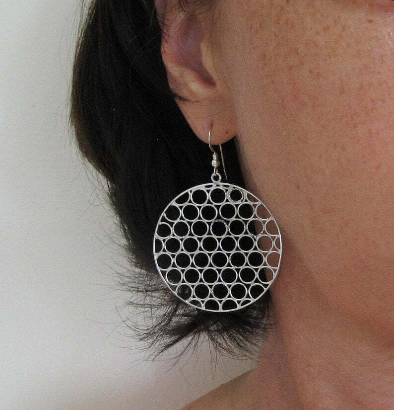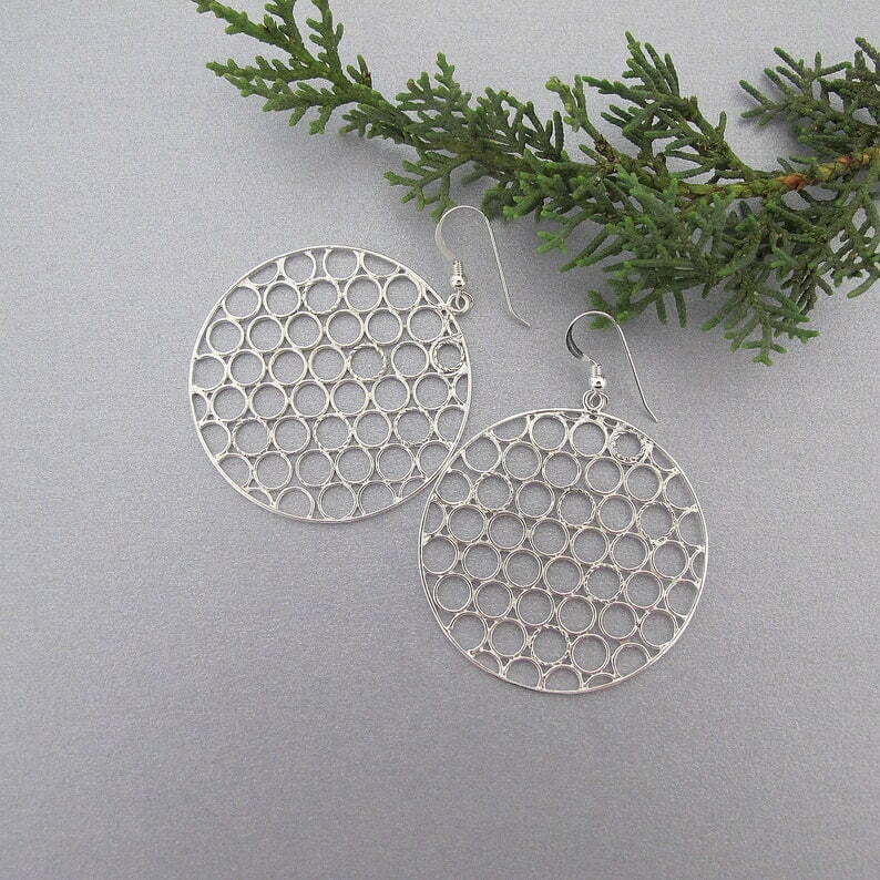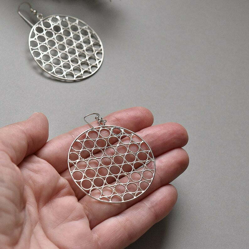Extra Large Circle Earrings in sterling silver, Handcrafted round Boho chic earrings, Statement jewelry, gift for girlfriend