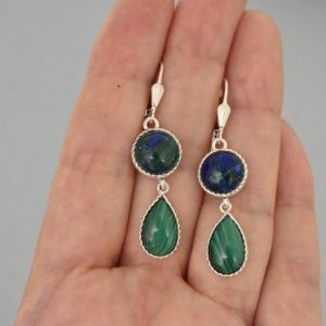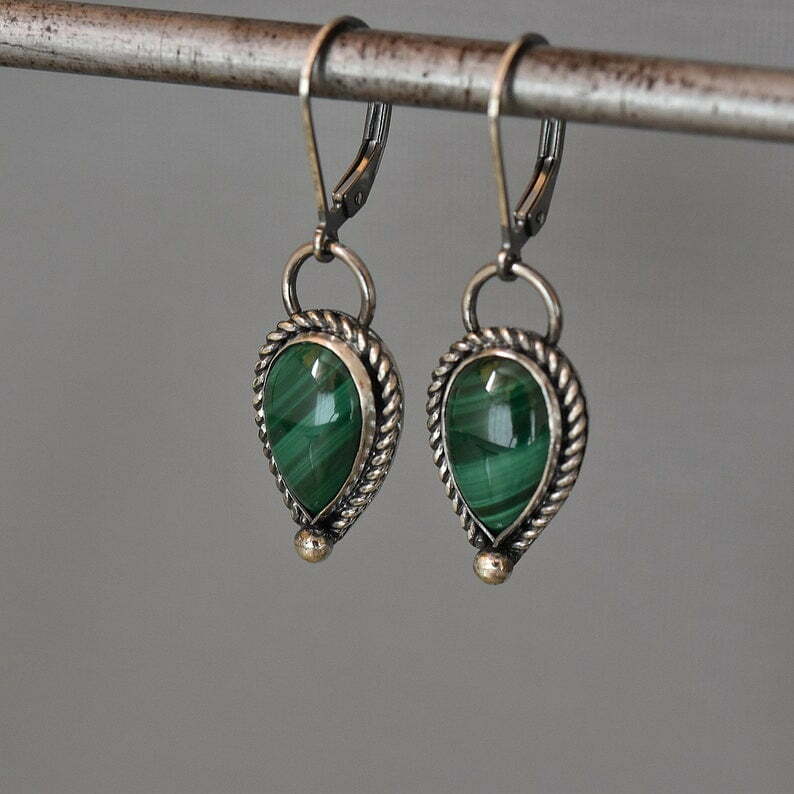 A delicate sterling silver earrings, decorated with malachite stones. Oxydized and polished