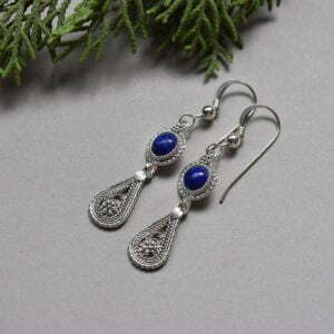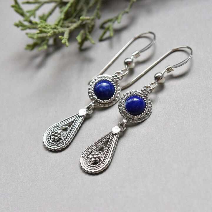 Tags: Cobalt earrings, Filigree silver earrings, Lapis lazuli drop earrings, Lapis royal blue earrings, yemenite jewelry
