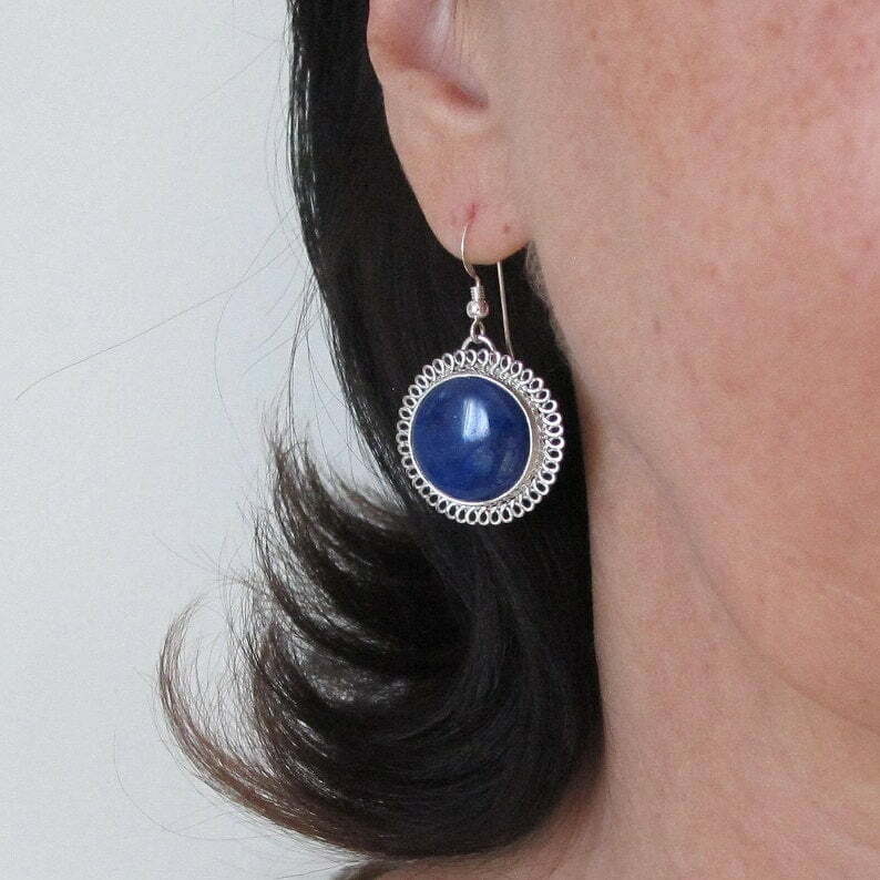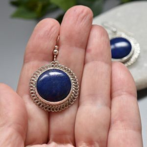 Tags: Circle earrings, Cobalt blue earring, dangle earrings, Lapis lazuli earrings, royal blue earrings, Silver earrings