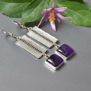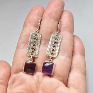 Tags: Amethyst long earrings, filigree earrings, lavender earrings, lilac earrings, Purple earrings, Silver earrings