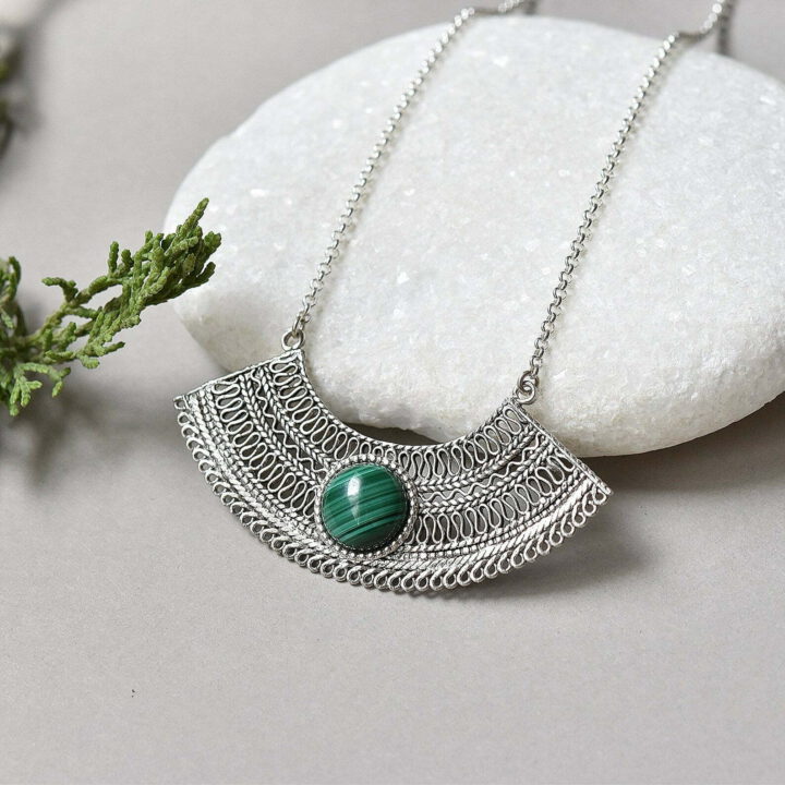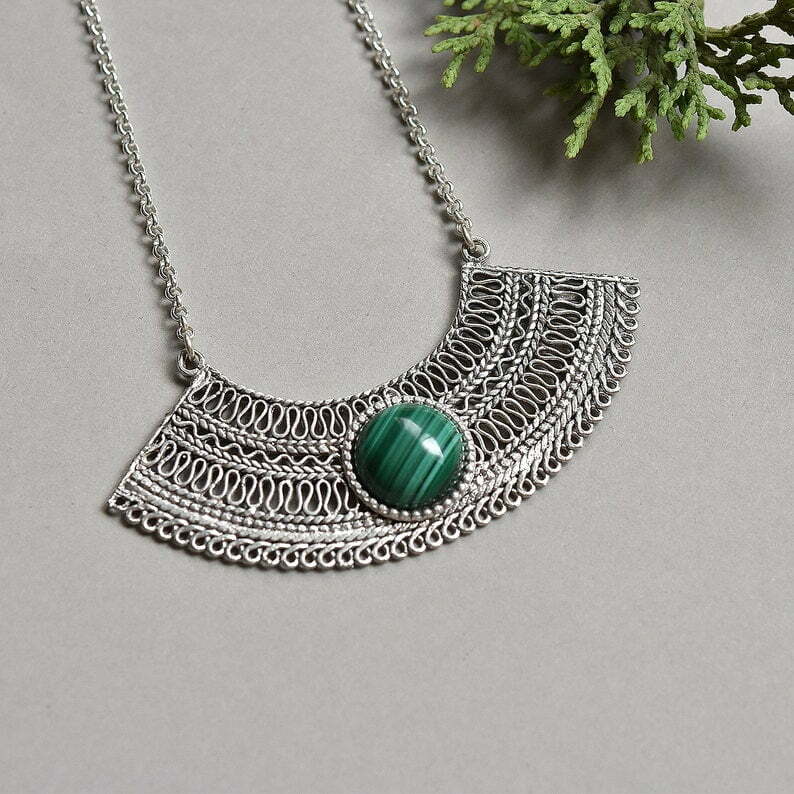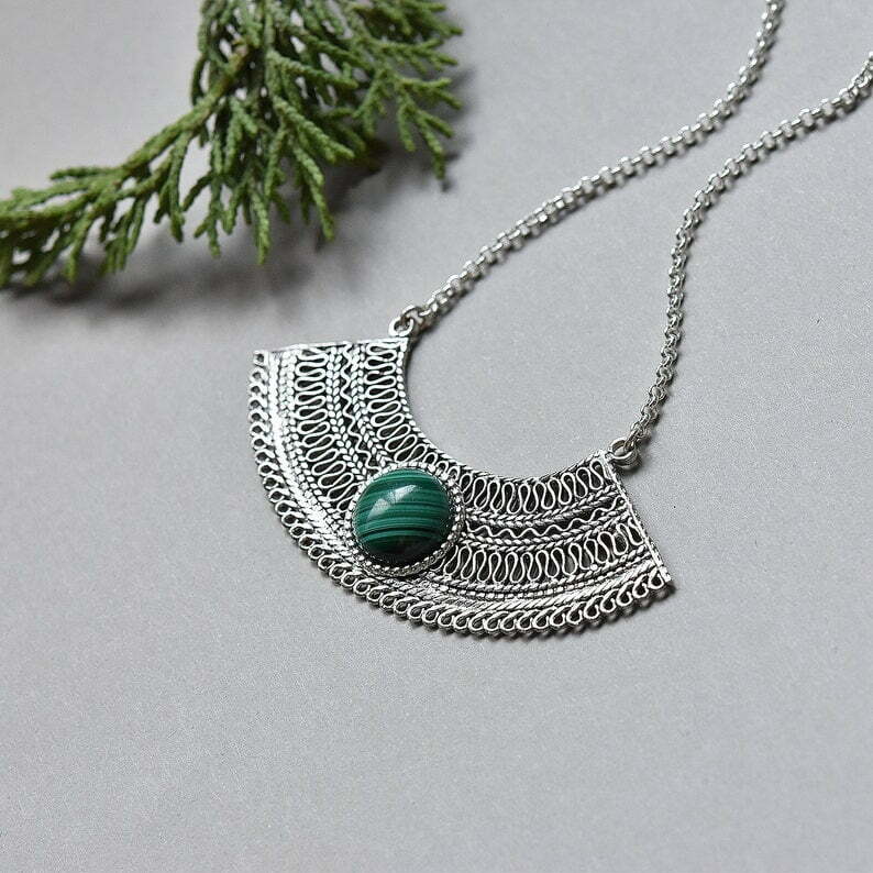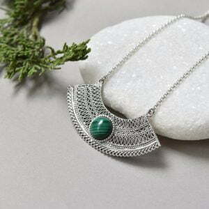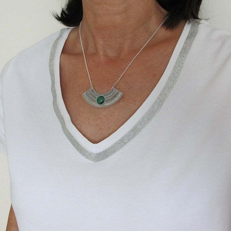 Tags: green gemstone pendant, Malachite silver filigree necklace, rainbow shape necklace in silver, yemenite jewelry