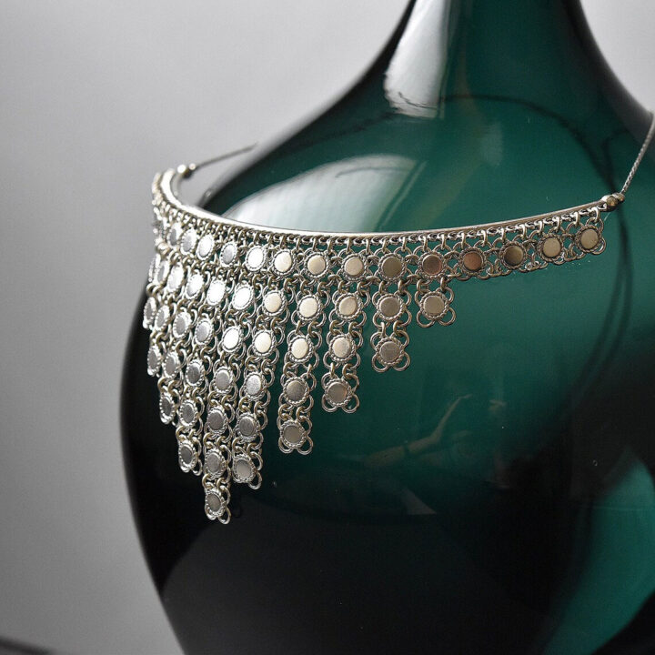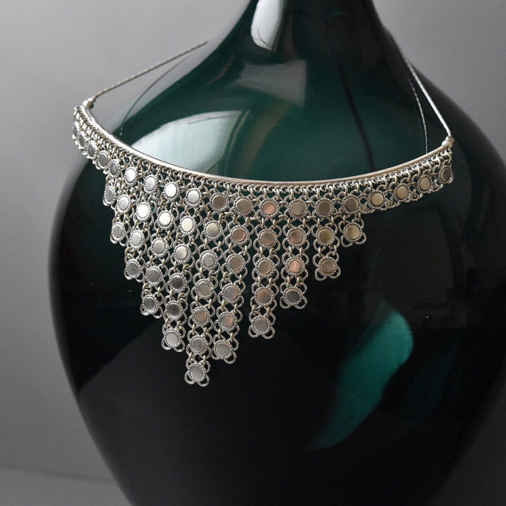 Tags: Ethnic Yemenite necklace, Mesh collar necklace, Silver Filigree necklace