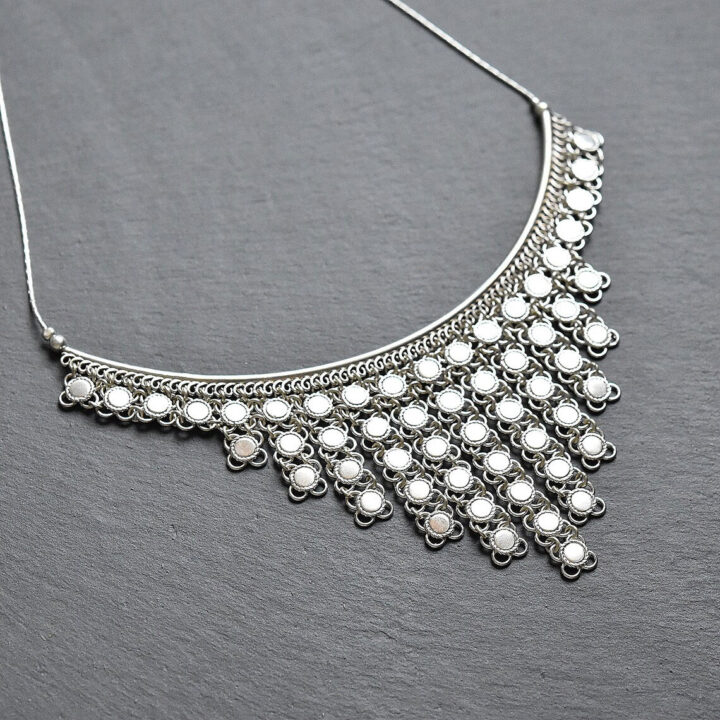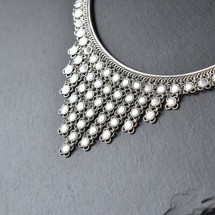 Mesh collar necklace, Silver Filigree necklace, Ethnic Yemenite necklace