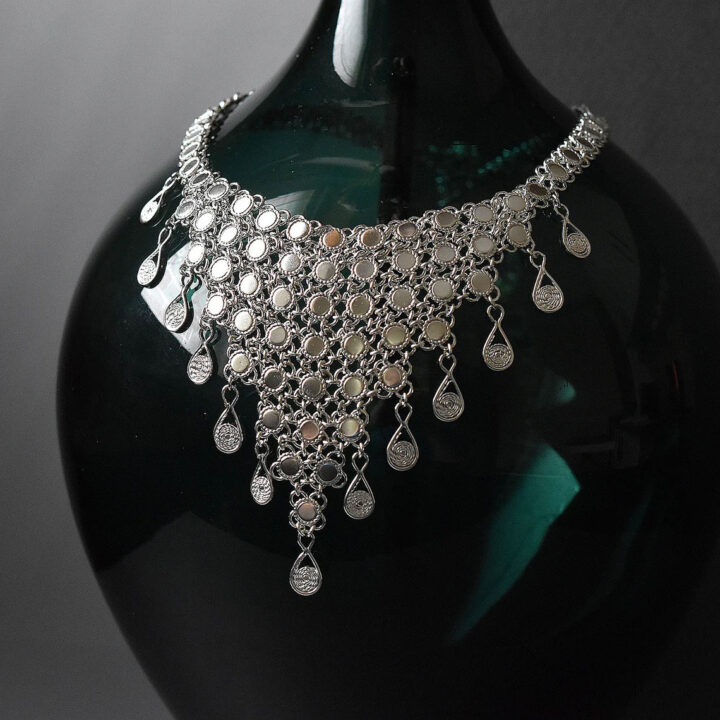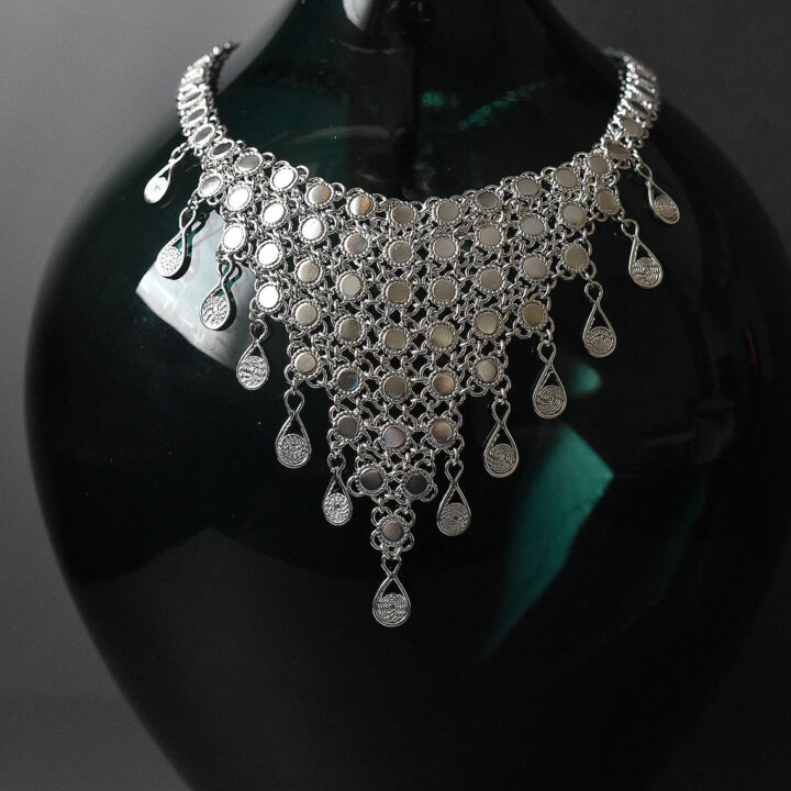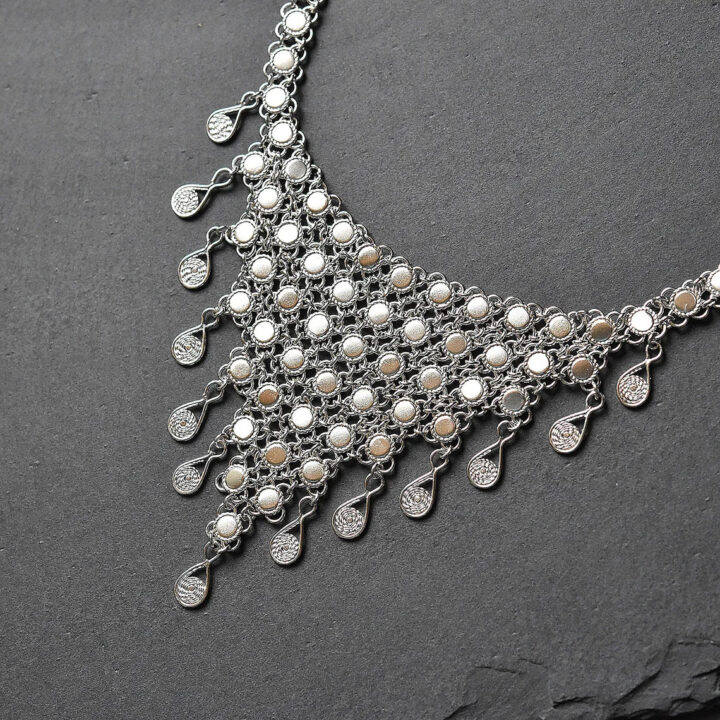 Traditional Yemenite sterling silver necklace,decorated with silver drops.