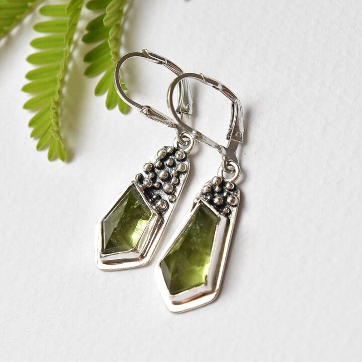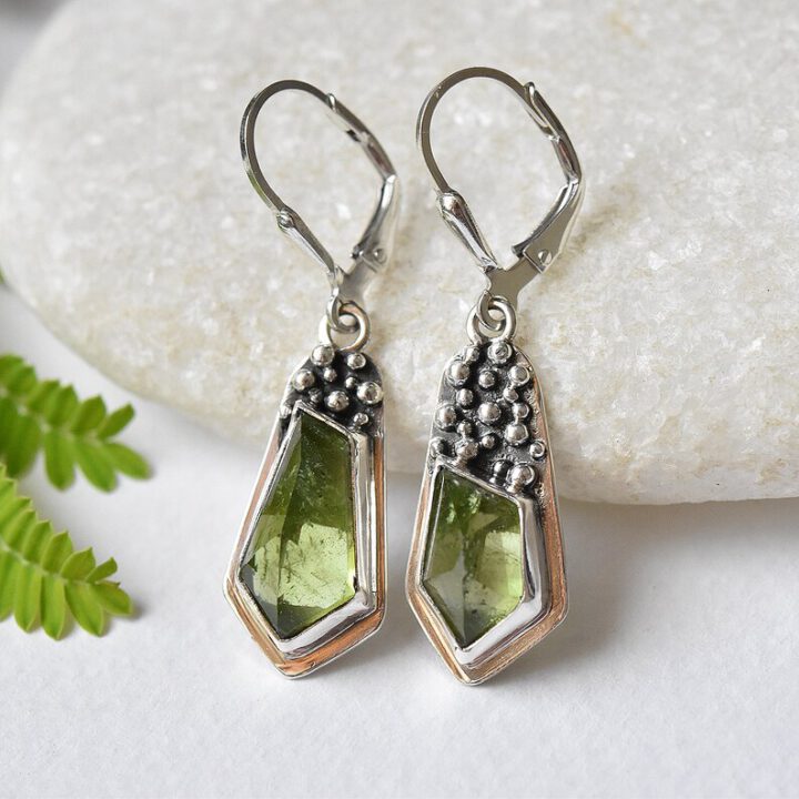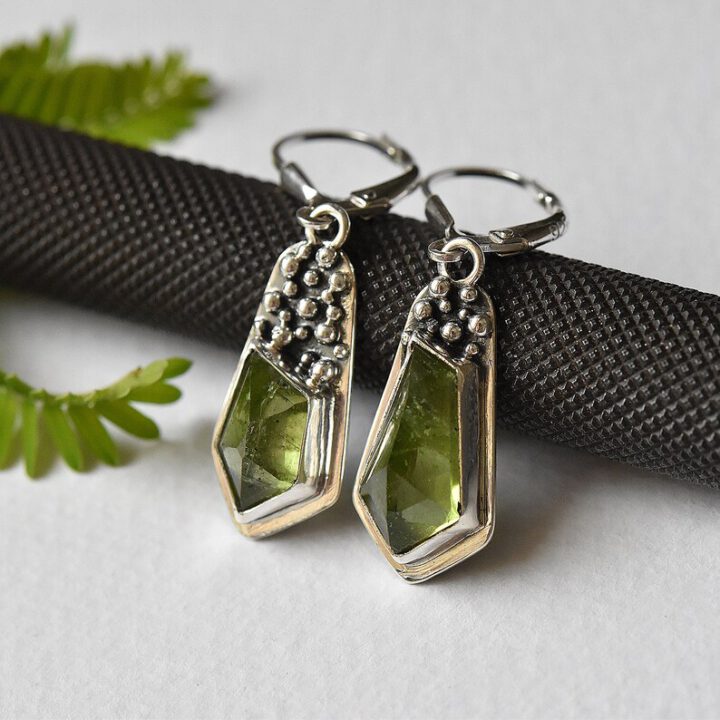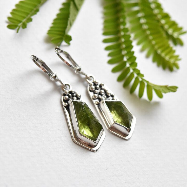 Aesthetic sterling silver mismatched earrings decorated with beautiful genuine peridot gemstones.