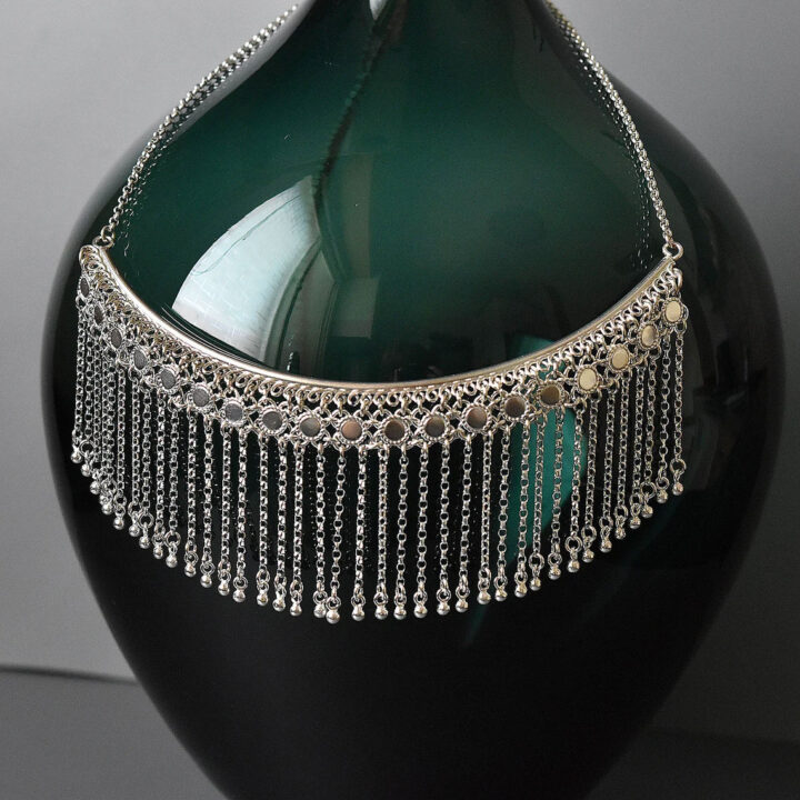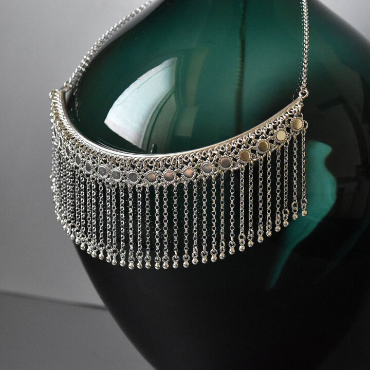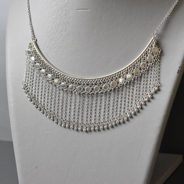 Multi chain silver necklace, Yemenite jewelry, ethnic tribal necklace