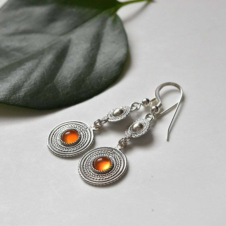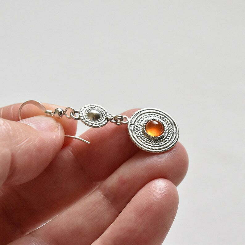 Tags: Carnelian earrings, Drop earrings israeli jewelry, Orange earrings, silver small earrings
