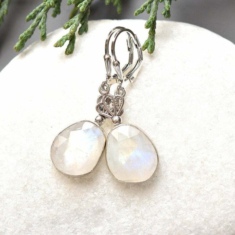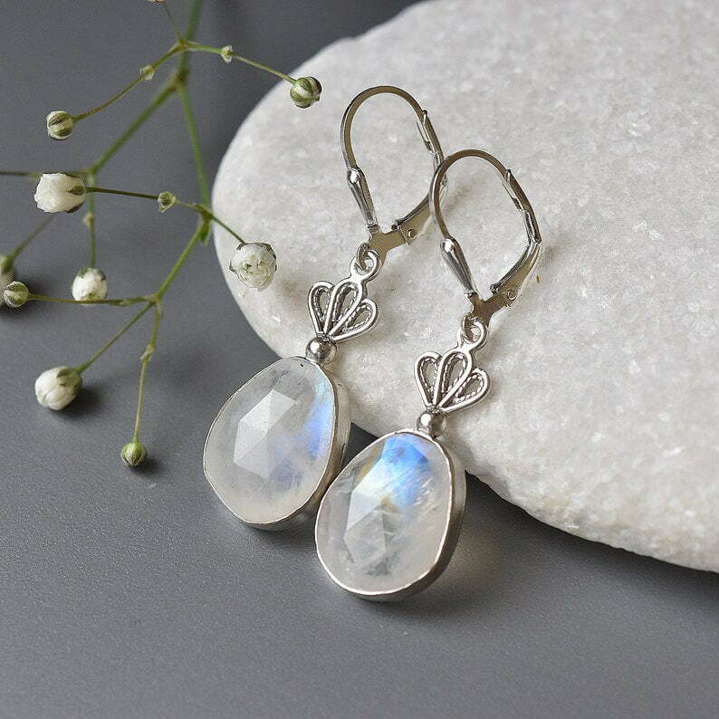 Tags: Israeli jewelry, Moonstone Earrings, Rainbow moonstone drop earrings, Silver earrings