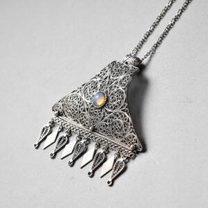 Amazing traditional filigree Yemenite pendant, decorated with Carnelian stone was totally handmade in our studio.
