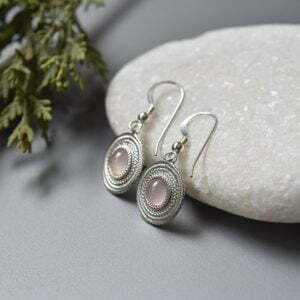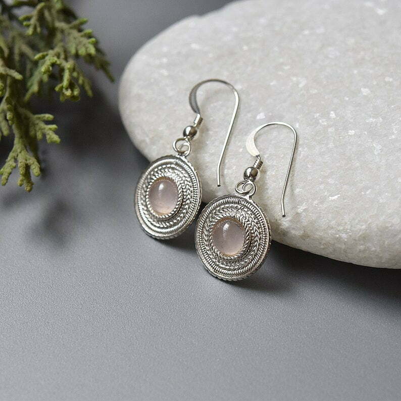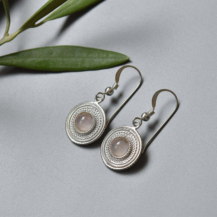 Tags: Circle earrings, elegant pink quartz earrings, minimalist silver earrings, Small rose quartz earrings