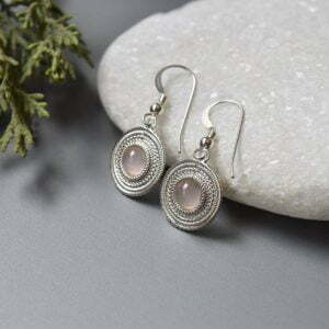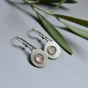 Small circle sterling silver earrings decorated with rose quartz.