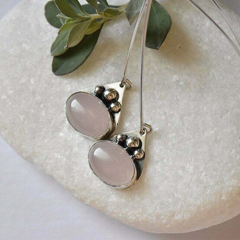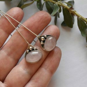 Tags: elegant earrings for everyday wear, Israeli jewelry, pink drop boho earrings, Rose Quartz long silver earrings