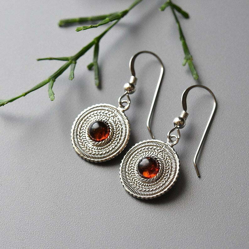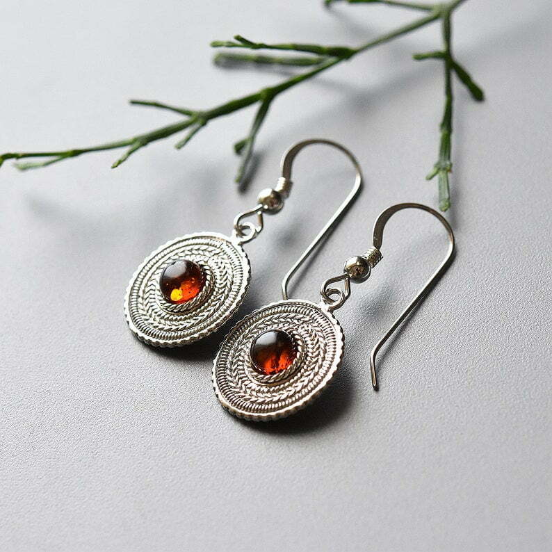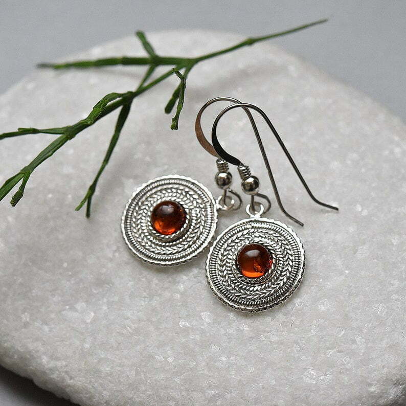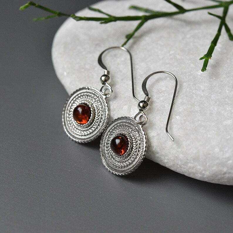 Tags: Amber silver earrings, elegant dangle drop earrings, Israeli jewelry, minimalist circle earrings, small everyday earrings