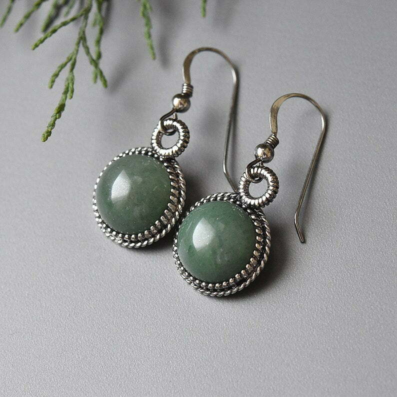 Delicate sterling silver earrings, decorated with Aventurine stones.