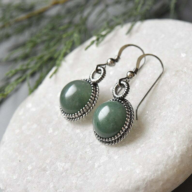 Tags: Green aventurine dangles, Israeli jewelry, Silver earrings, Small green earrings