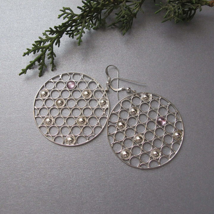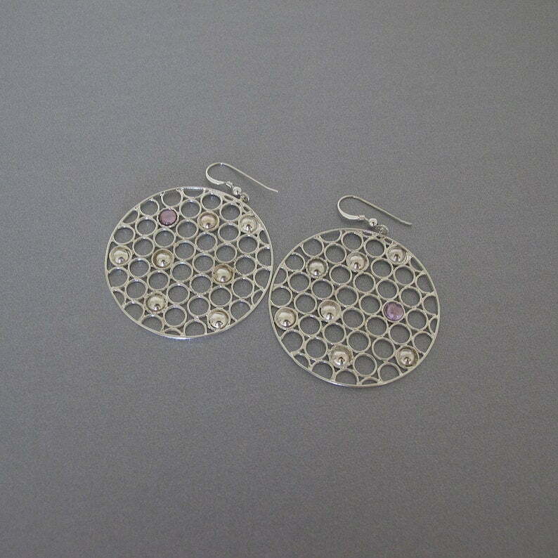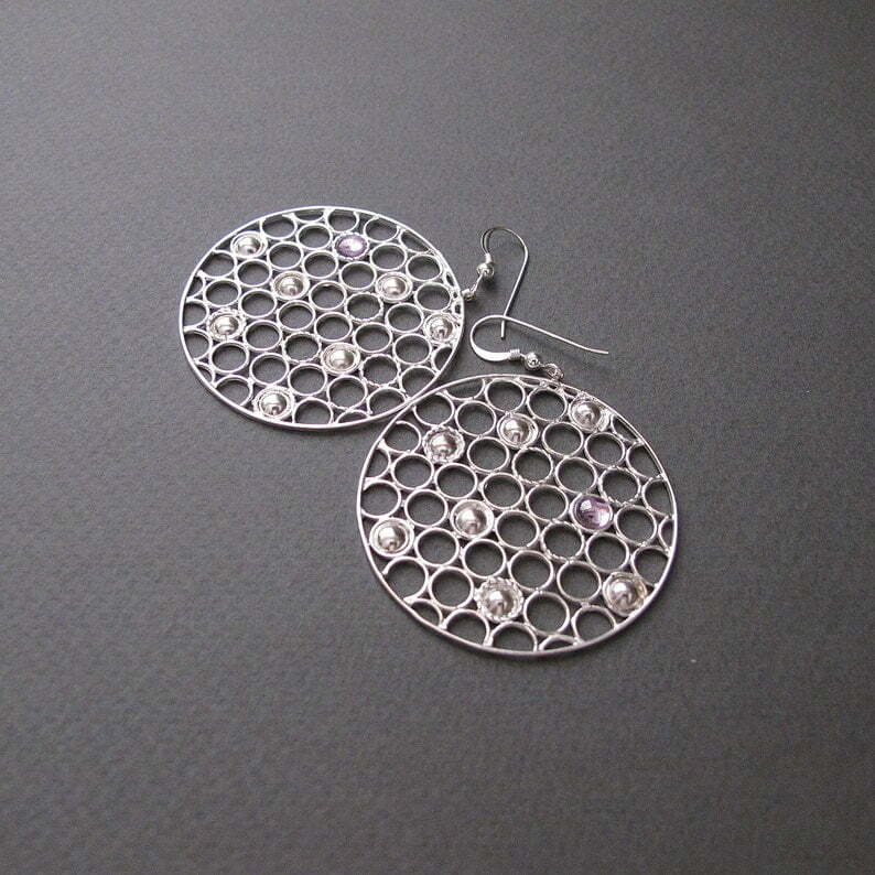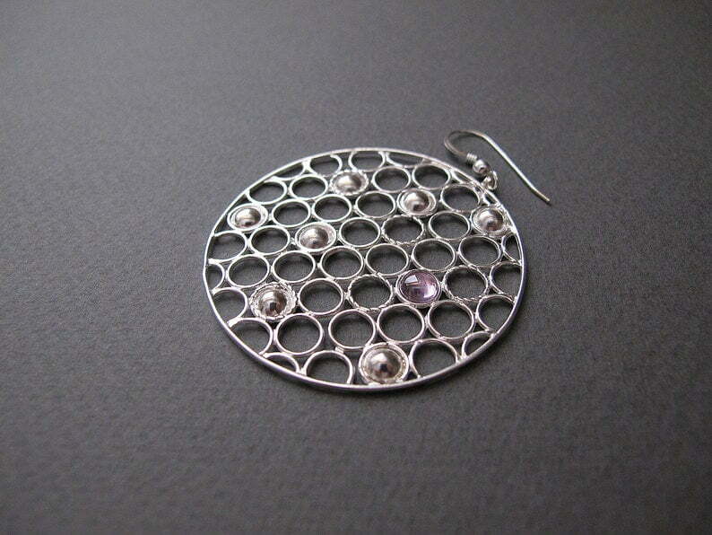 XL Sterling Silver dangle earrings, Handcrafted circle Bohemian earrings, Statement earrings, birthday gift for wife
